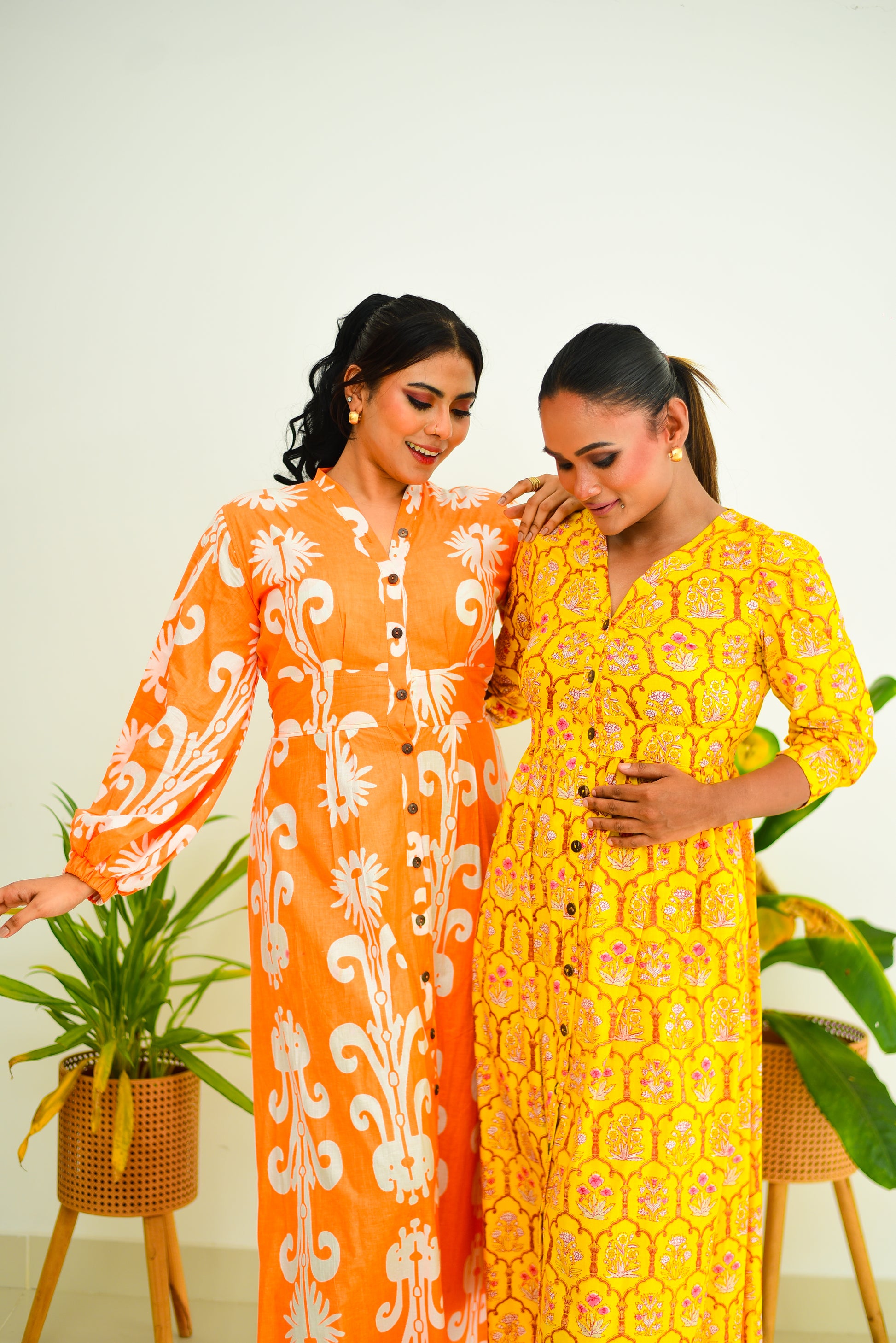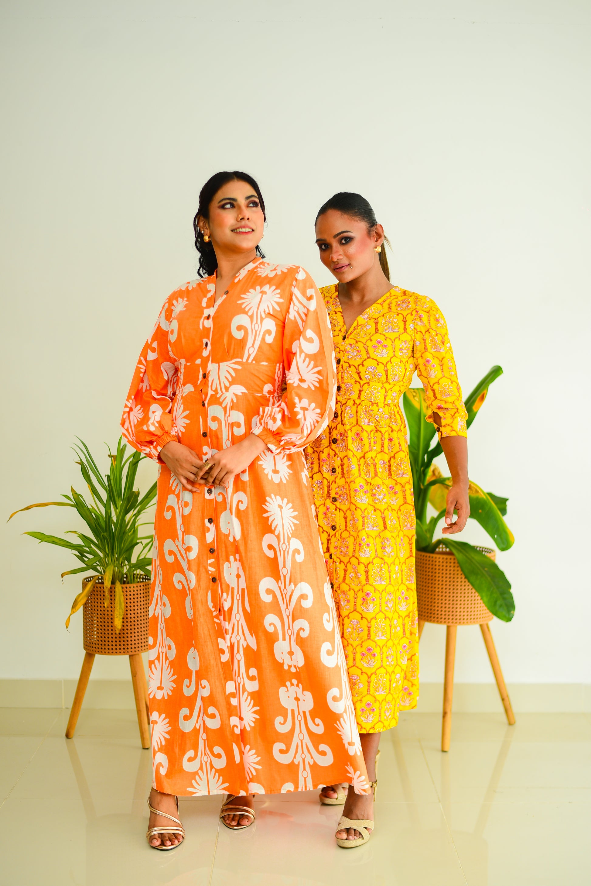Experience luxury and style in our Bishop Sleeve Maxi Dress. Made with screen printed fabric, this 56 inch dress exudes elegance. The bishop sleeve adds a sophisticated touch while the maxi design provides full coverage and comfort. Elevate your wardrobe with this must-have piece.