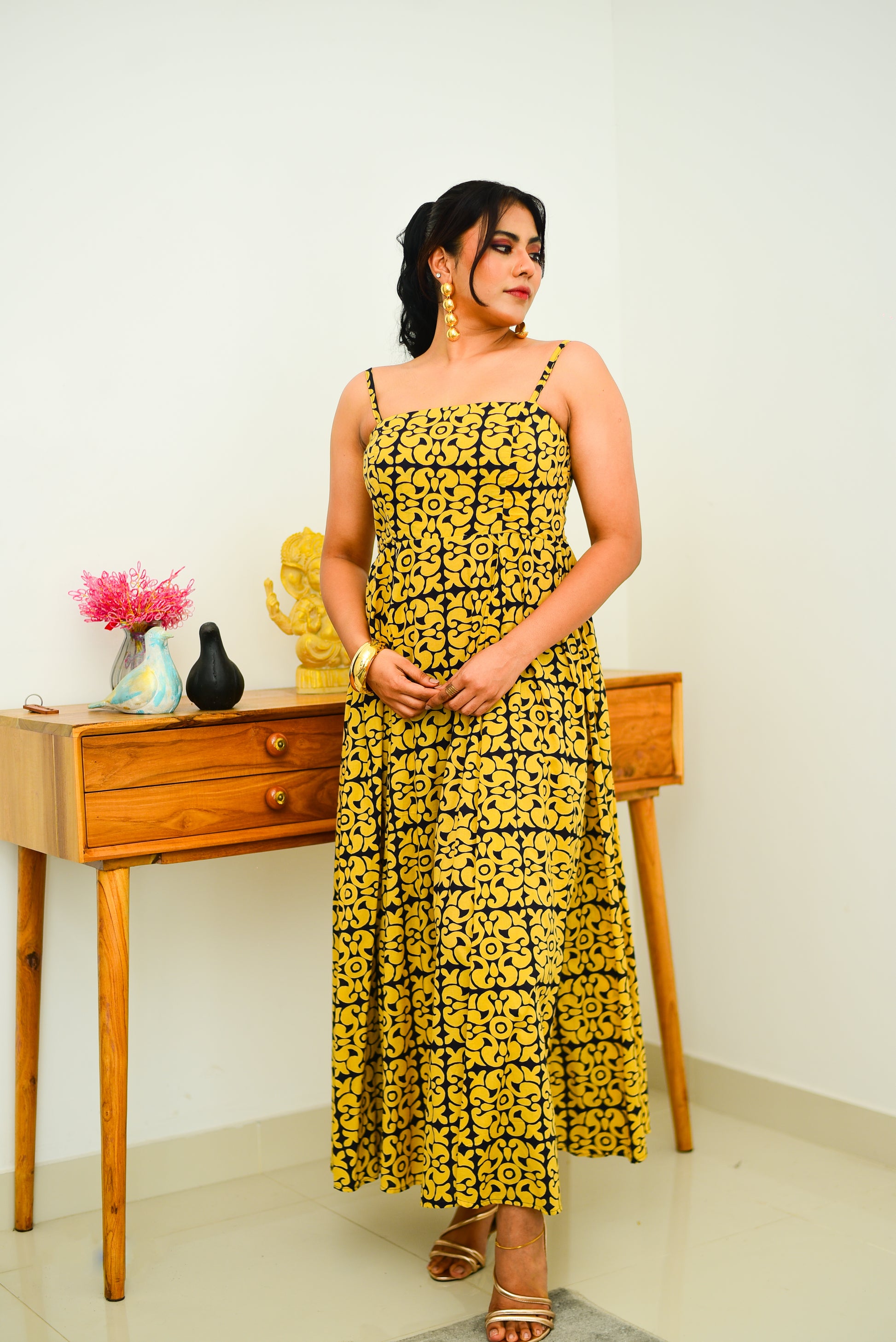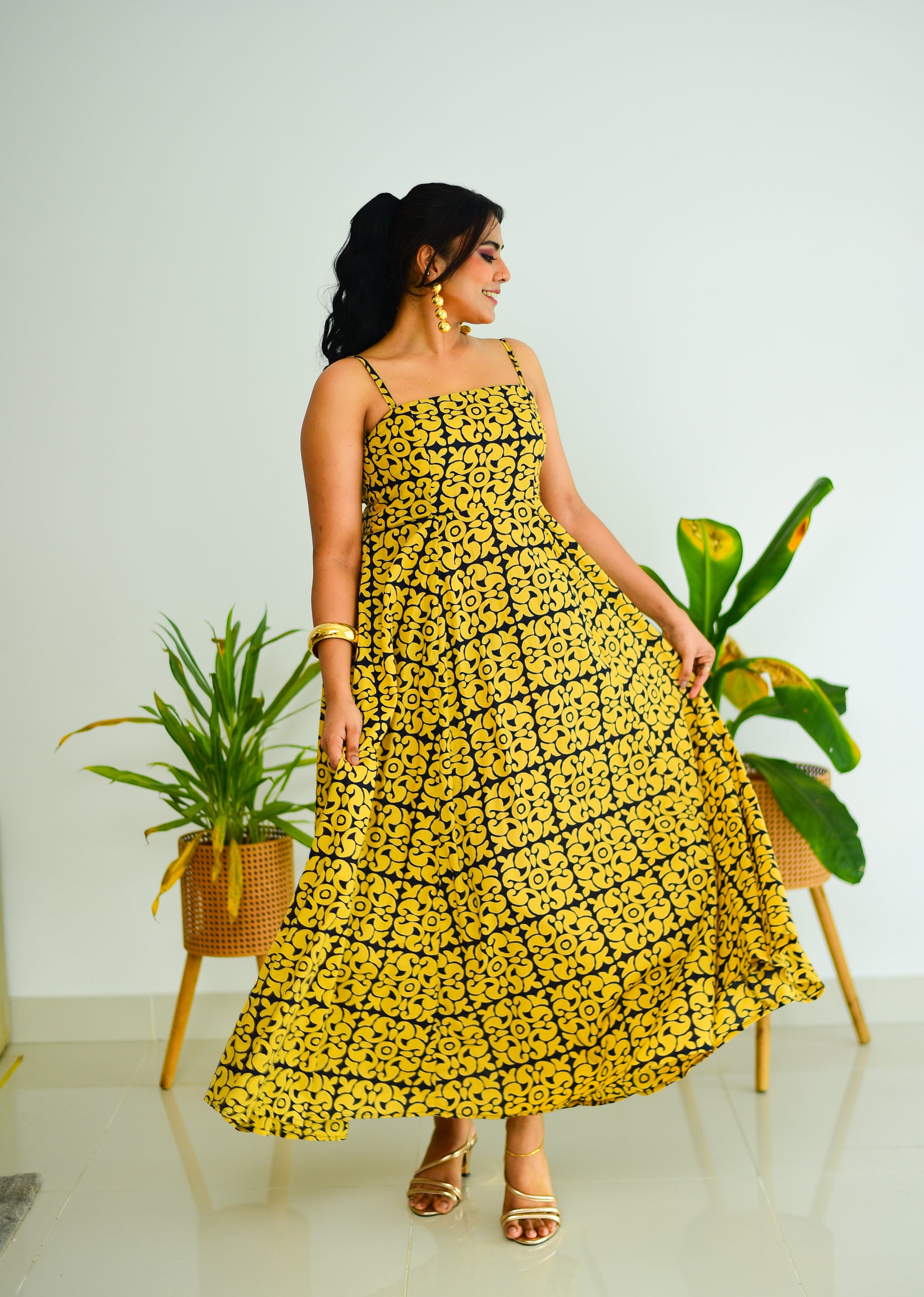 Strap Block Printed Maxi Dress