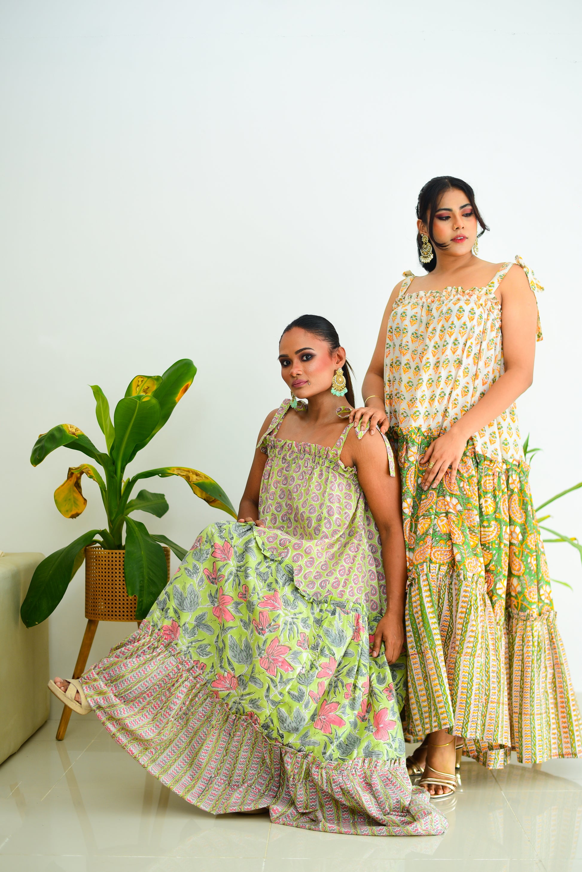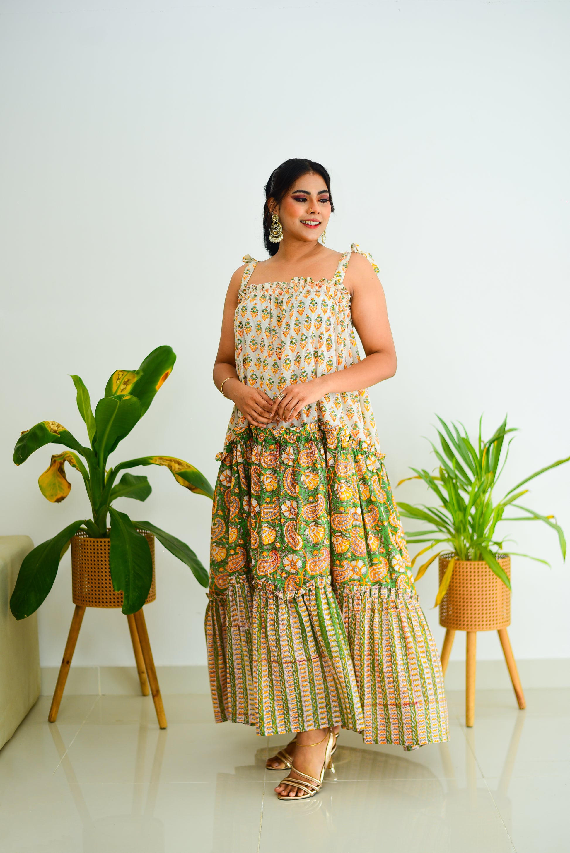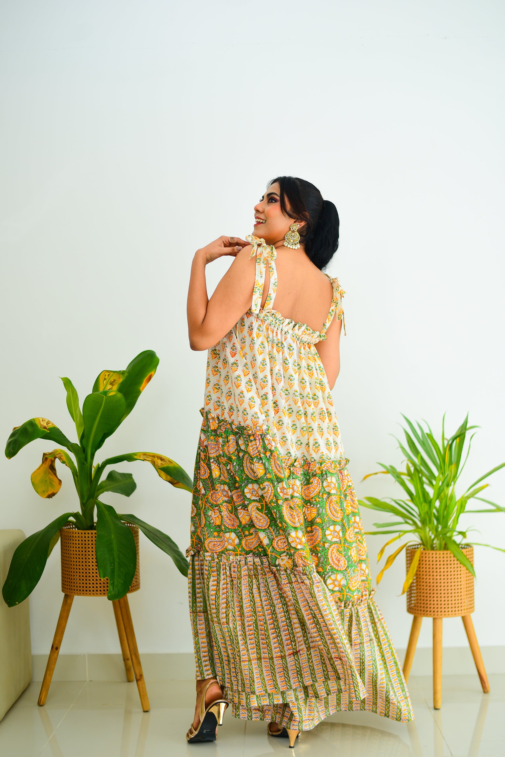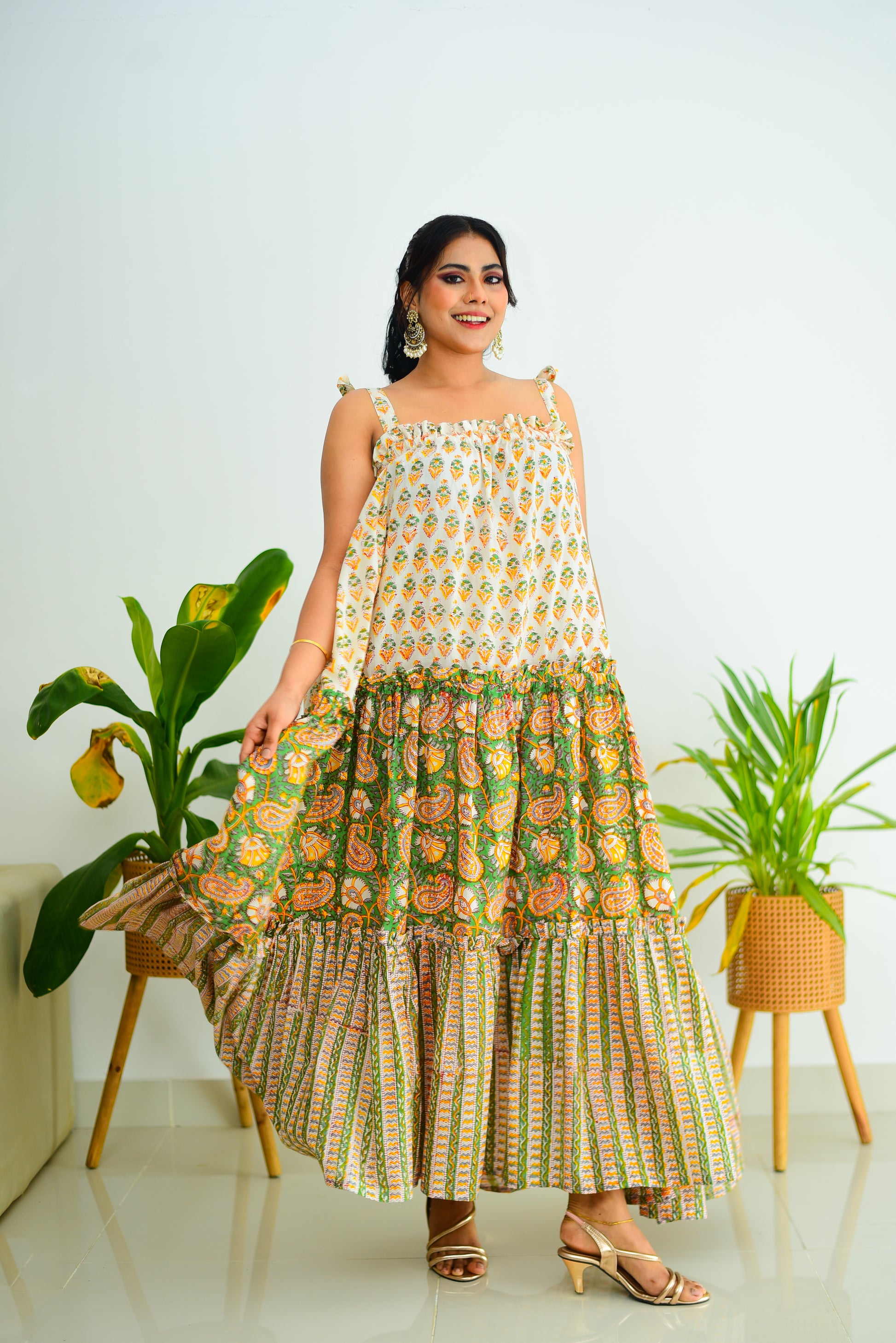 This block printed Strap Tier Dress is perfect for any occasion. With its unique design and versatile straps, it offers both style and comfort. Made from high-quality materials, it provides superior durability and long-lasting wear. Elevate your wardrobe with this must-have dress.