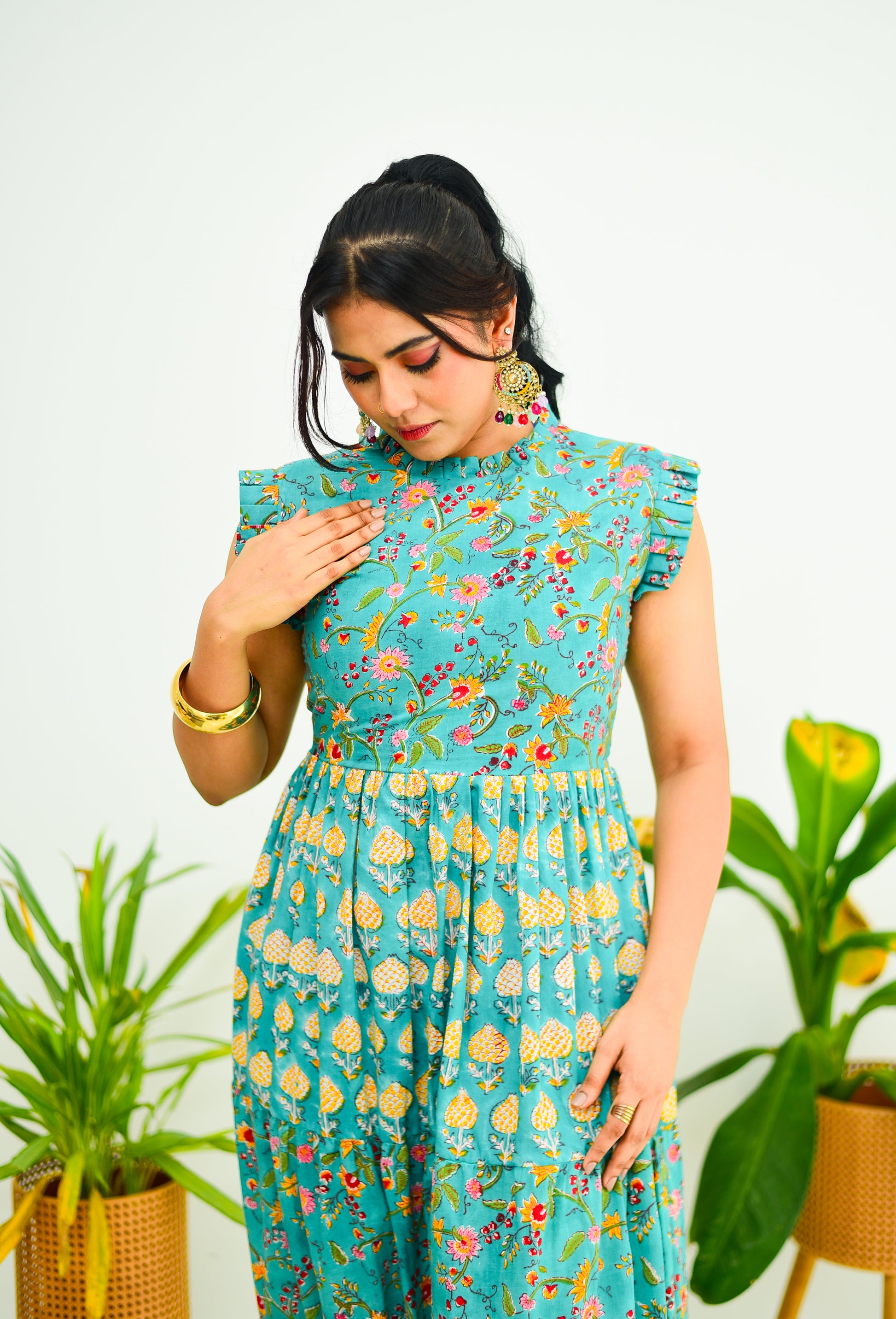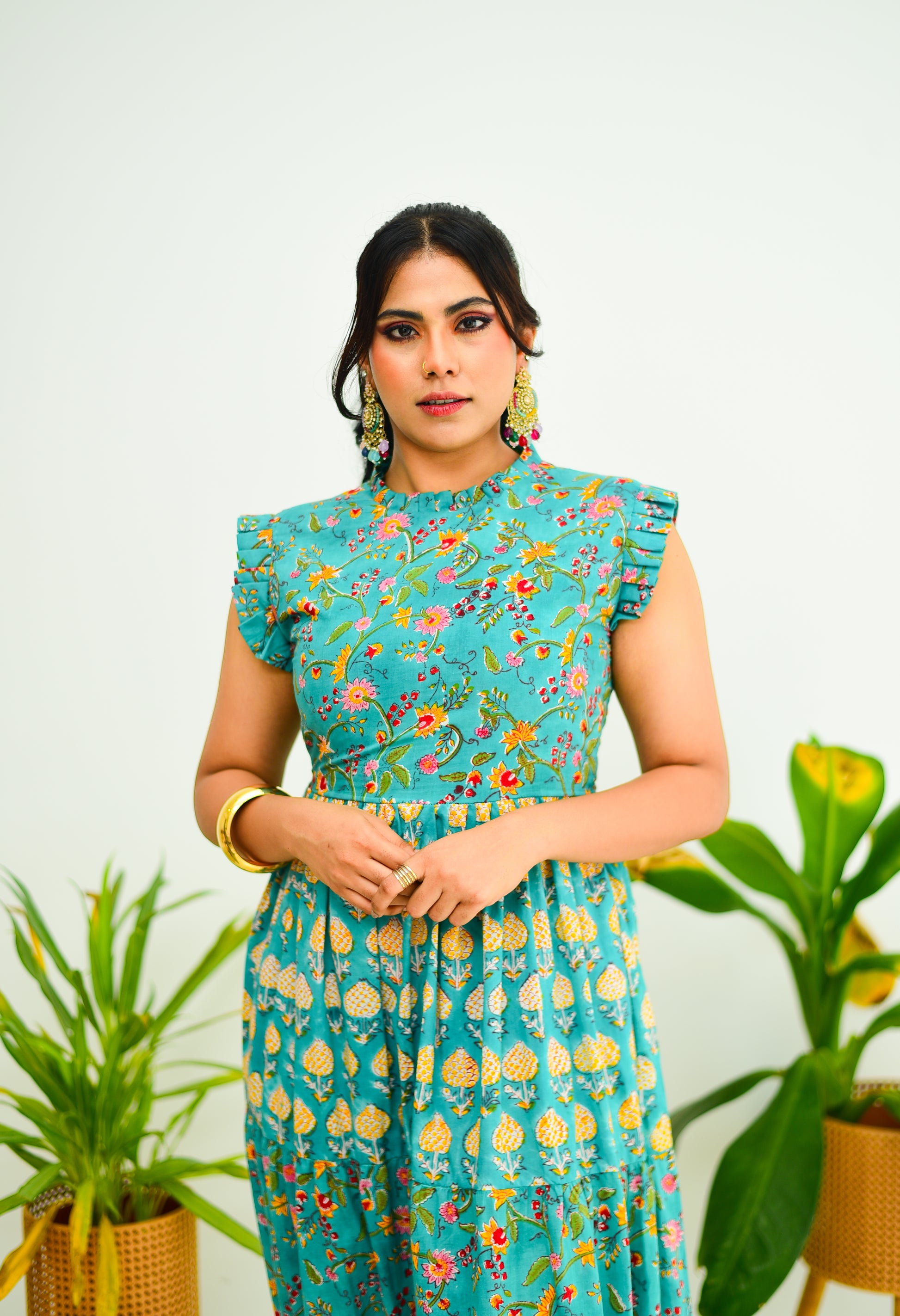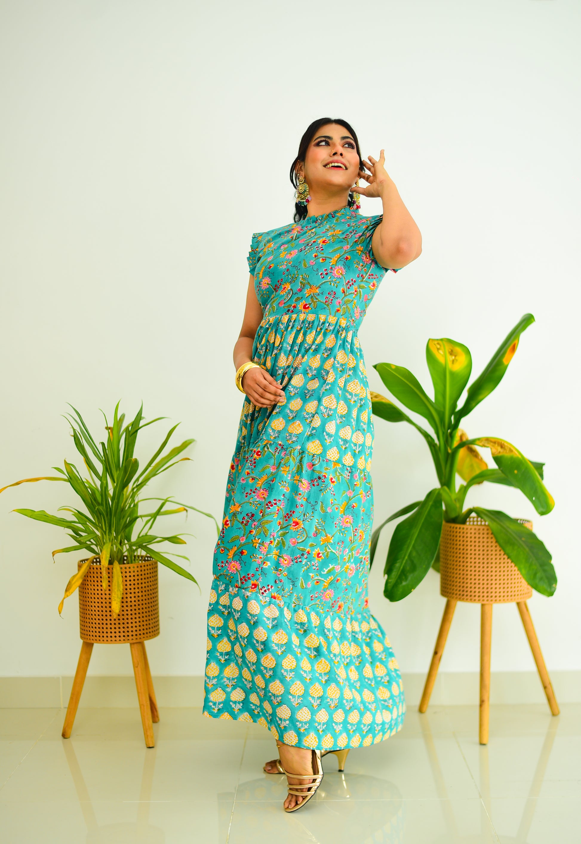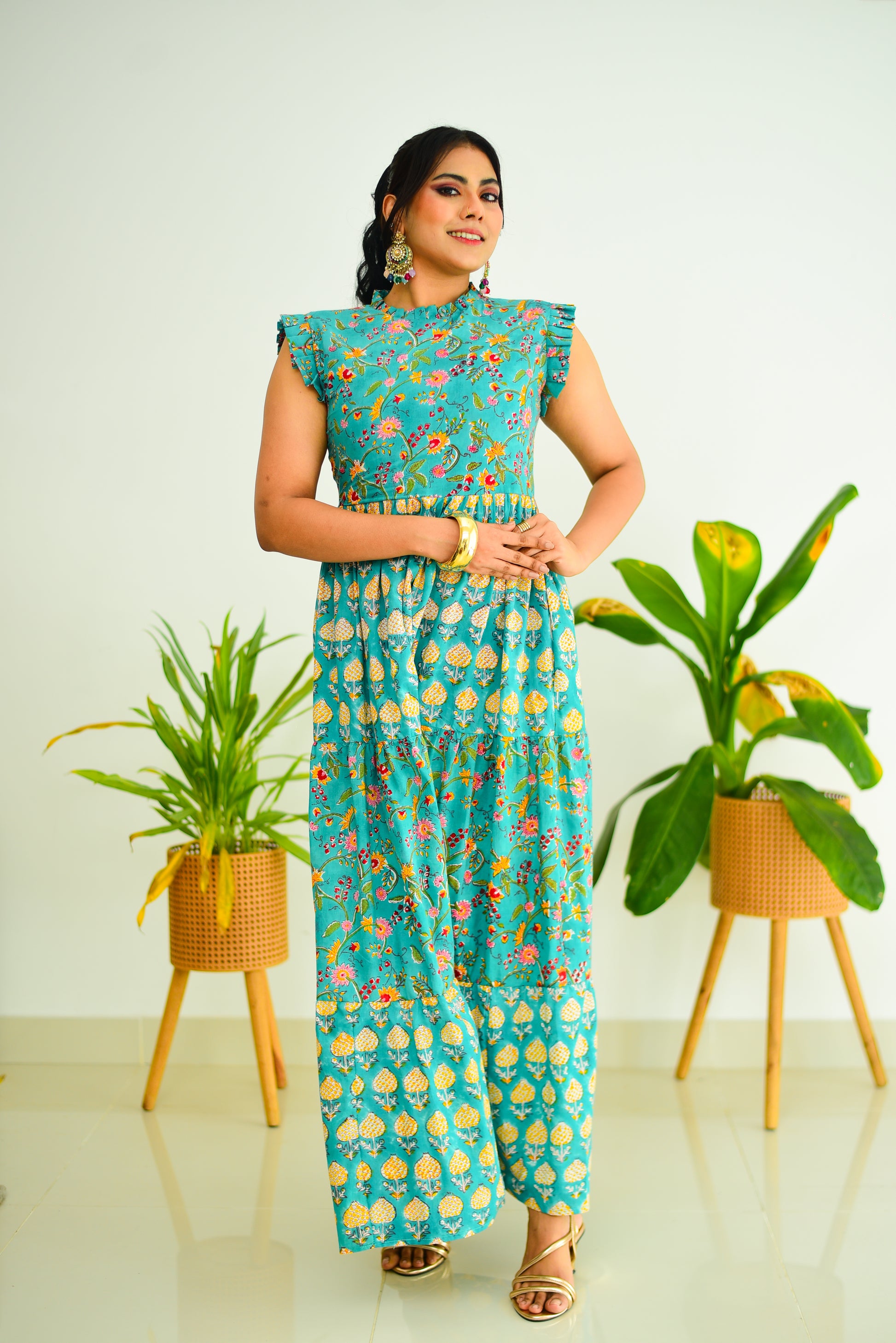 Expertly crafted for comfort and style, our Tiered Dress boasts a mix and match fabric combination that sets it apart from the rest. The maxi length and pleated detailing adds an elegant touch, making it perfect for any occasion. Experience the perfect blend of fashion and function with this versatile dress.