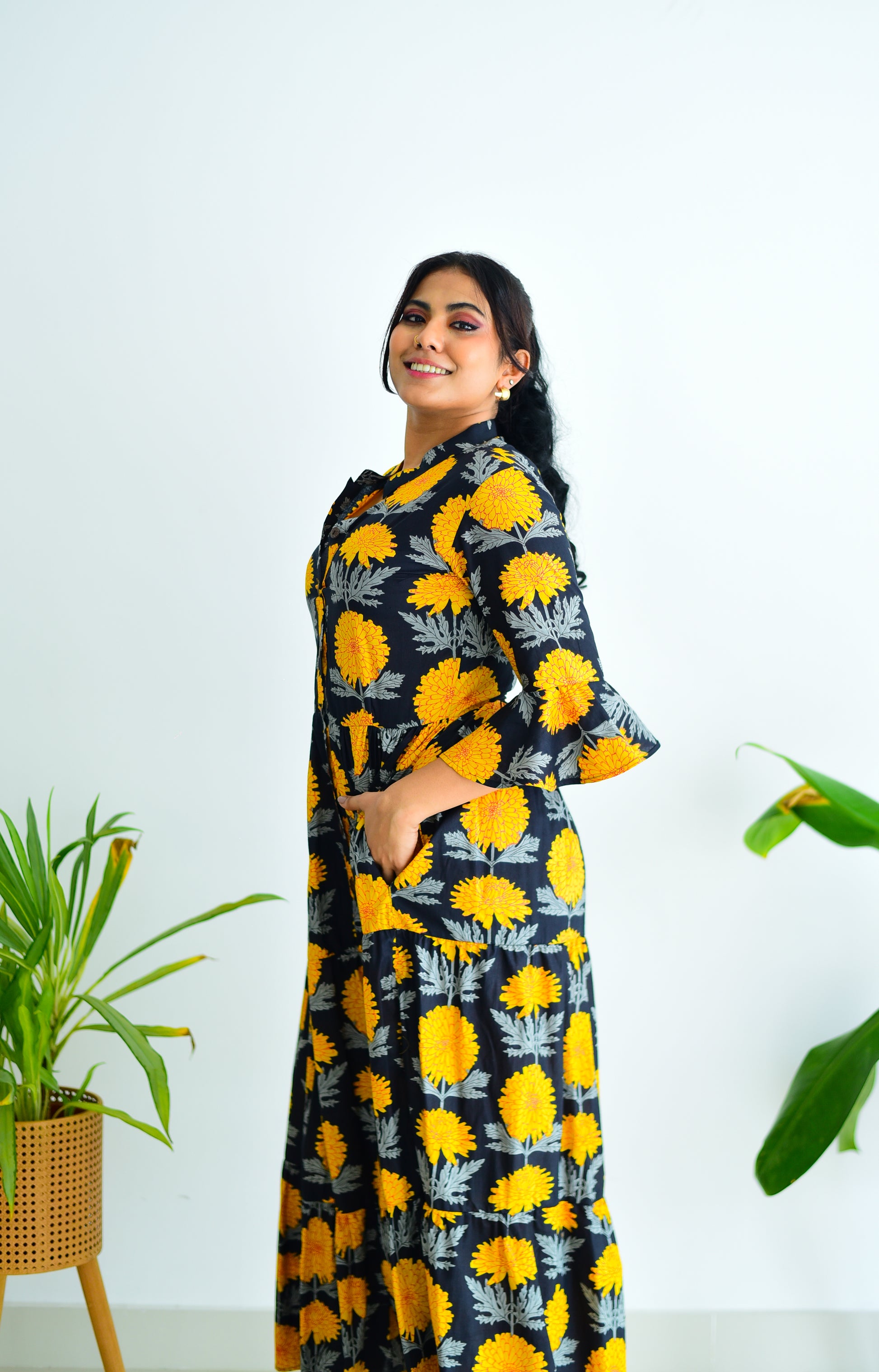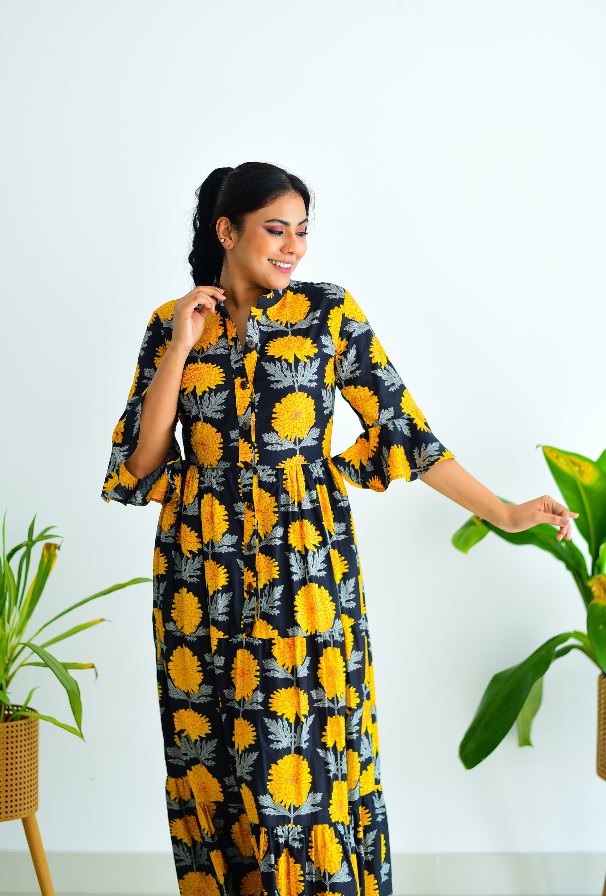 Expertly crafted for both style and comfort, this Tropical Vibe Printed Tiered Maxi Dress features 3/4 sleeves and a full-length of 54 inches. Perfect for any occasion, from vacations to everyday wear, this dress will bring a touch of tropical vibes wherever you go.